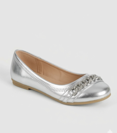 Zapatilla plateada con lazo